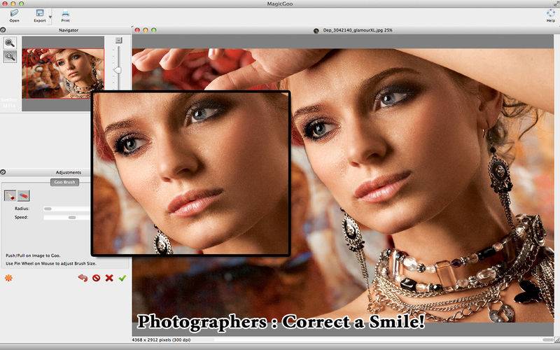With MagicGoo you squeeze, smear, goo, liquefy your photos anyway you like, no limits!