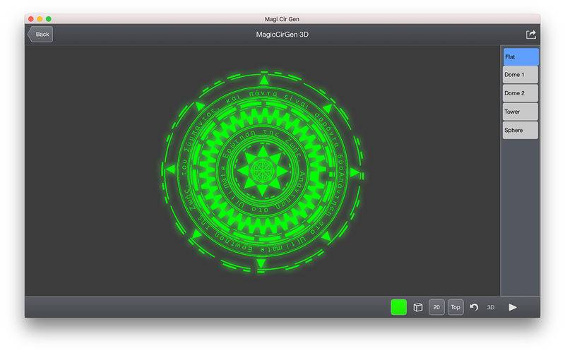 Generate your own Magic Circle / Mahoujin! Randomly generated by algorithm - infinite number of possibilities! View in 3D, rotating in 2D or 3D, and chose your favorite color. Save as an image or animation gif.