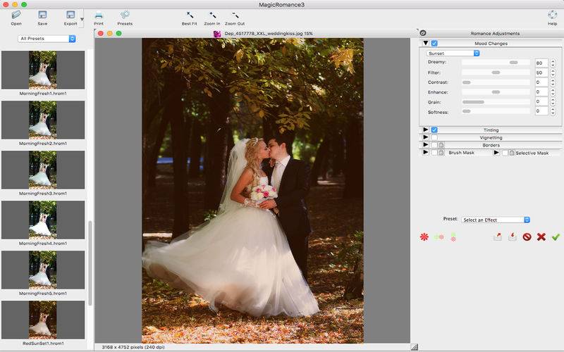 For more advanced user, you can create a romantic mood and apply it to any picture... Through this beautiful filter you will add to any photo this chemistry that makes it unique...