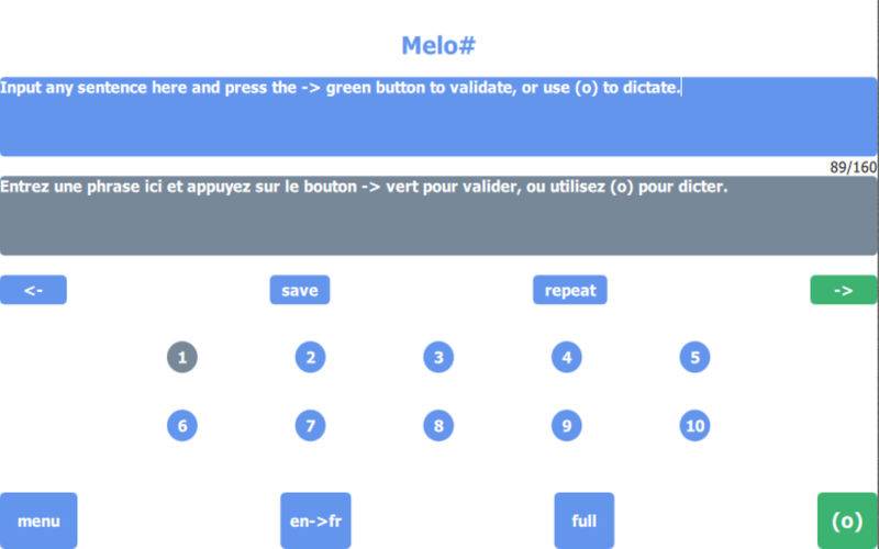 . Spell a sentence in your own language so Melo# will transcribe it and repeat it in the desired language