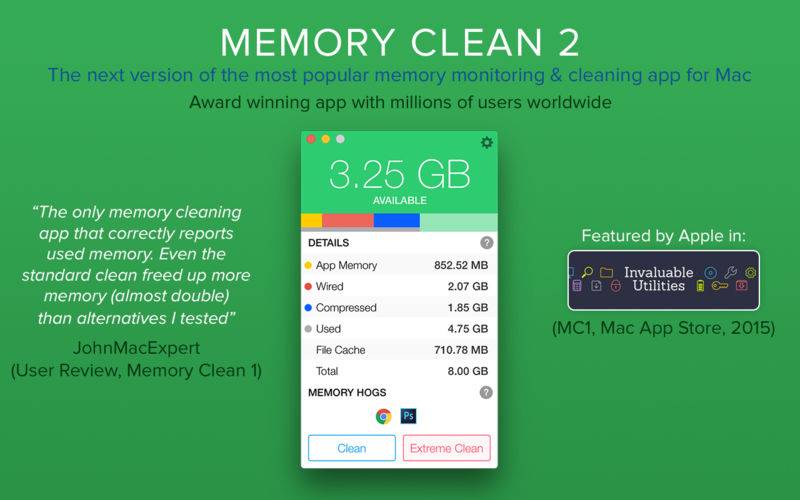 Memory Clean 2 is the ultimate app for optimizing your Mac's memory and is best used after you have finished using a memory (RAM) intensive app or game.