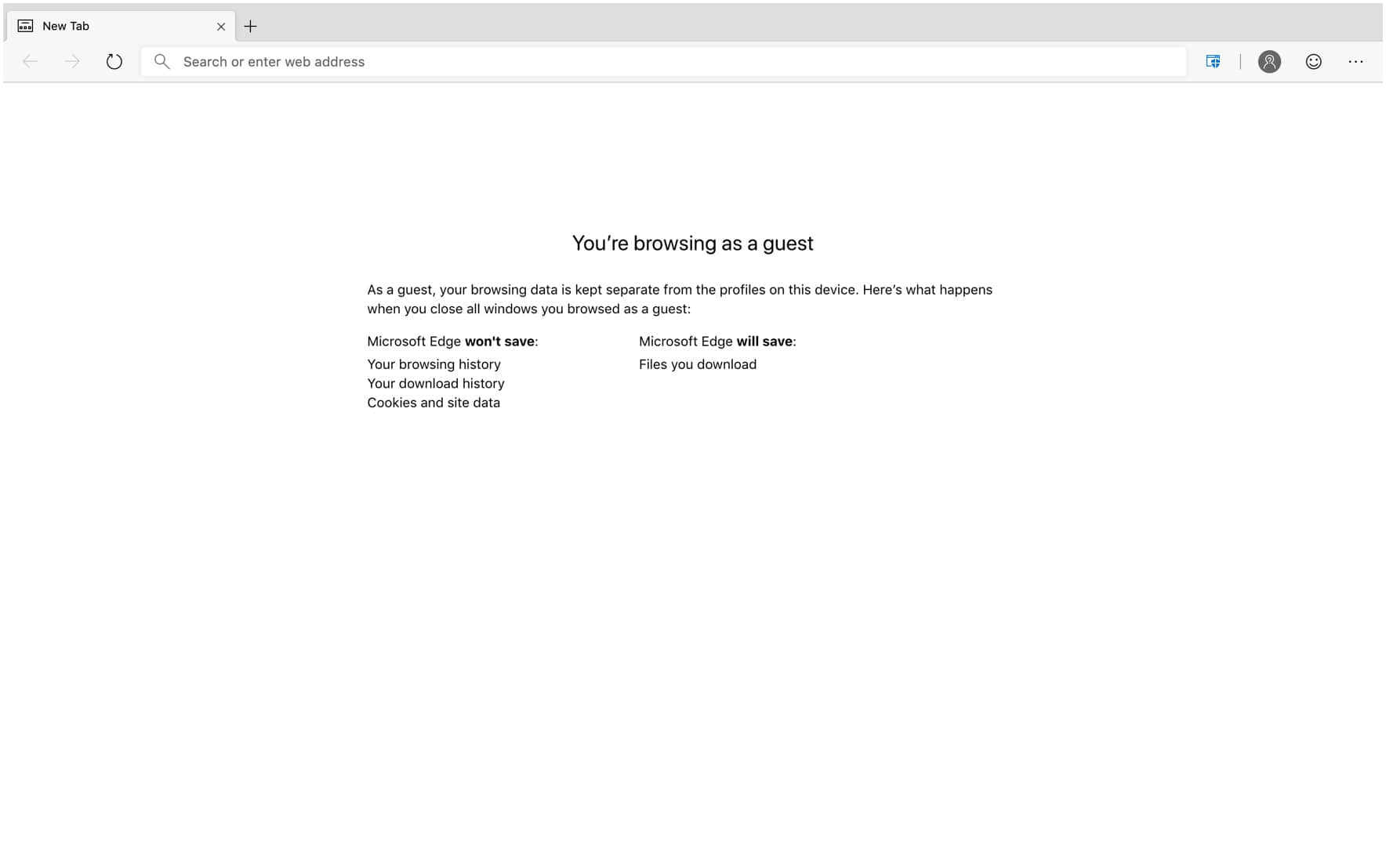Edge for macOS 还支持 guest 客人使用模式,该模式下浏览器不会保存用户浏览历史记录、下载记录以及 Cookies 和网站的其他数据。