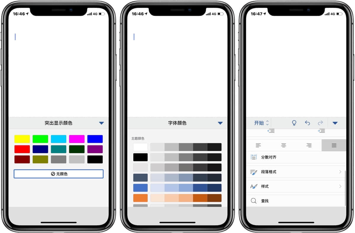 像自定义文本颜色、排版、文本样式定义等一些系列的 Office 上的基础操作功能在 Word/Excel/PowerPoint 三个 app 里都是统一调用的。