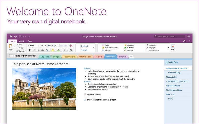 OneNote is your very own digital notebook. With OneNote, you can capture that flash of genius, that moment of inspiration, or that list of errands that's too important to forget. Whether you're at home, in the office or on the go, your notes travel with you. And you can share your notes and collaborate with others, across multiple devices! Here are some more ideas on how to use OneNote: Capture rich notes for classwork, meetings, or research Keep track of your shopping list and mark items off wherever you are Create an itinerary and keep track of your travel plans for your next big vacation Take pictures of receipts and bills to remove some of the paper clutter Collaborate and share ideas with your team Research items and prices to make the best purchasing decision Keep and edit all of your notes