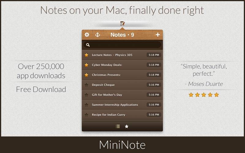⁕ Take notes without opening a new app - MiniNote simply rests on your menu bar at all times