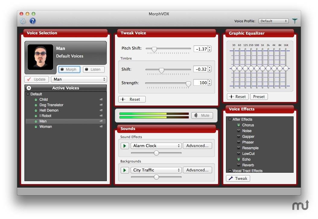 MorphVOX Mac will change your voice online and in-game on your Macintosh® computer. Take your voice-changing to a new level with superior voice-learning technology, background cancellation, and sound quality.