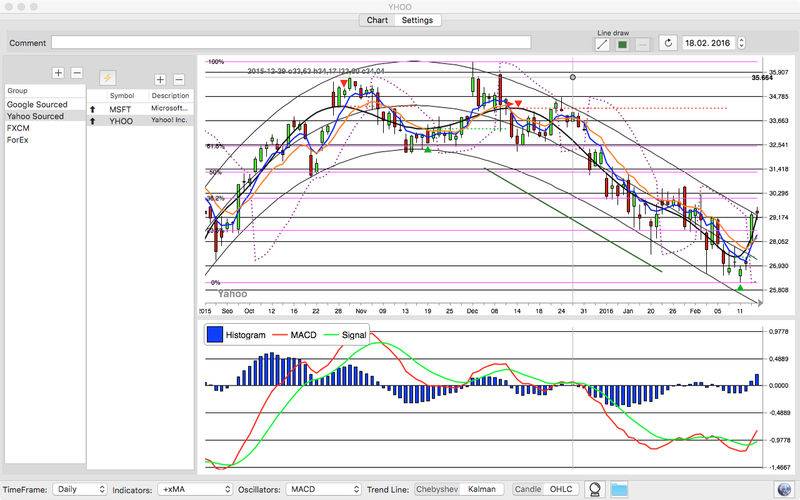 * Uses Chebyshev polynomials or Kalman filtering to create trend lines against Yahoo Finance, GoogleFinance and various ForEx sources including FXCM