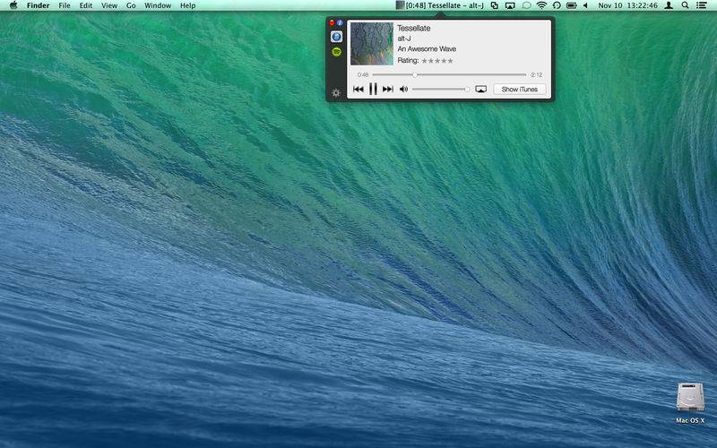 MusicBuddy shows information about the music you are listening to right in the status bar. Change track, toggle play/pause, change the position within the track, and adjust iTunes/Spotify volume without losing focus on what ever it is you're working on.
