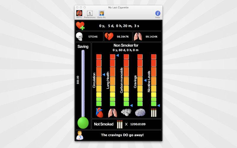 Quit smoking and stay quit with new My Last Cigarette™ for OSX, the original quit smoking software. Since 2000 My Last Cigarette™ has successfully helped 1000s of ex smokers stay quit. If you are serious about staying quit then this app could make all the difference!