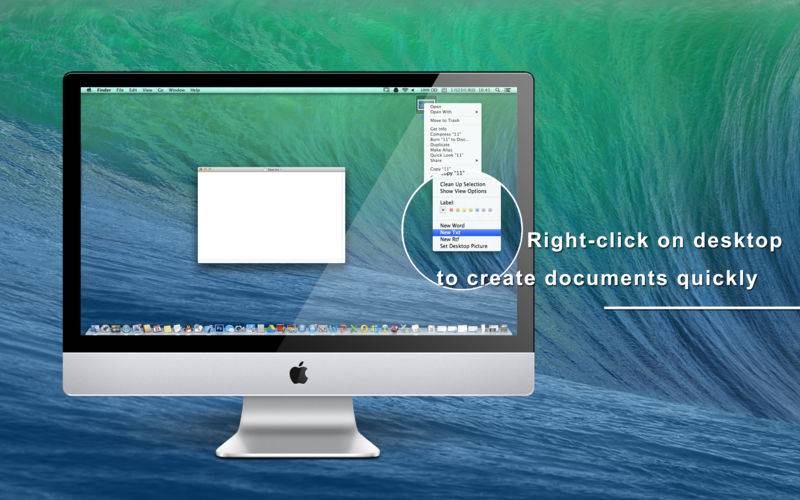 New Office help you create office documents (txt, rtf, word, ppt, excel, and other file format) quickly. It adds a set of menu items to Finder’s context menu, enabling you to create office files easily in any location.