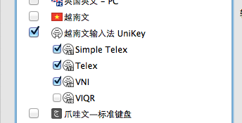 相信大家“美国英文”这个选项上是灰色的,不能勾选的,所以,我们来一个曲线救国。翻到最底下,勾选越南文输入法,勾选方法如下: