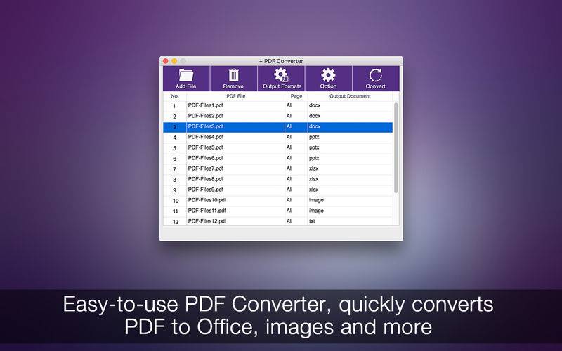 It’s the smart way for savvy professionals and knowledge workers to convert PDF. You can convert PDF into 9 different file types, including Office document (Word, PowerPoint, Excel), Image (JPG,PNG,BMP,GIF,TIFF) and Plain Text (.txt).