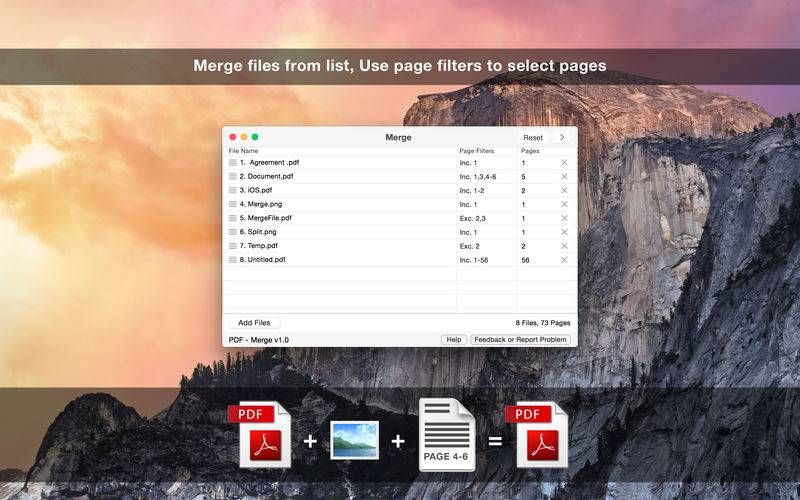 - Option to Include and Exclude pages from the individual added PDF files