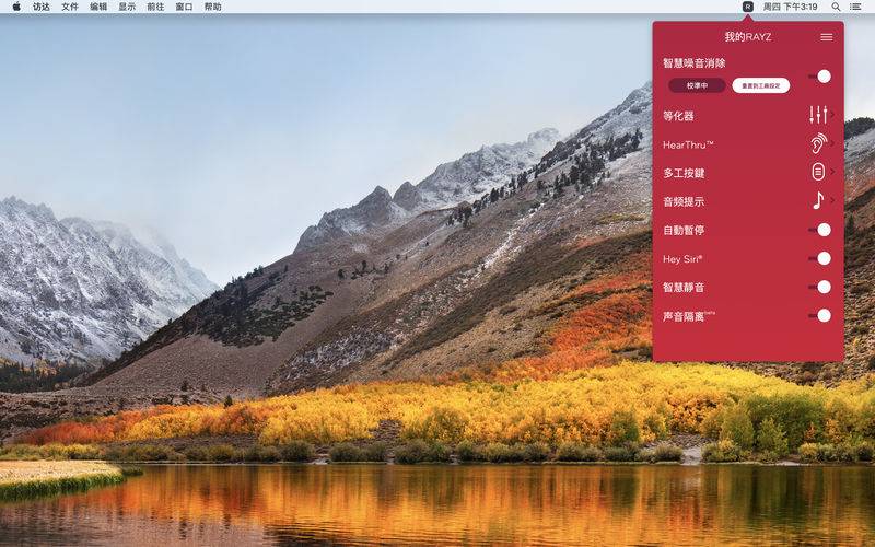 当使用你的Rayz Pro耳机,该应用程序为您提供了新的用户化级别。 耳机的主要功能包括: