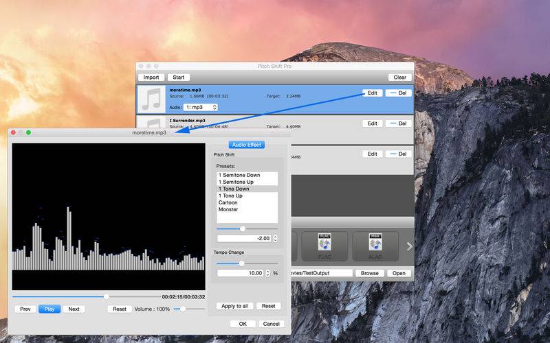 您可以轻松地实时调整你想要的音调和/或音量。