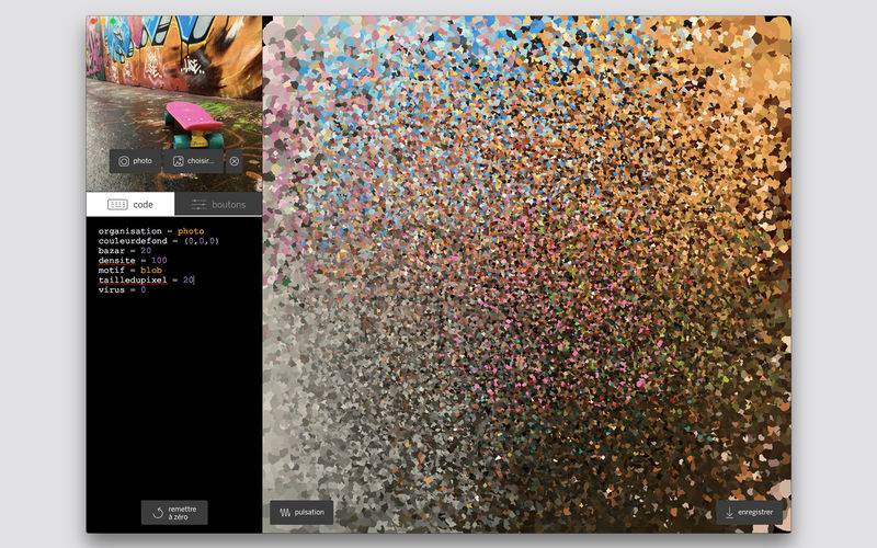 Exhibited during the Fête du code créatif, Centre Georges Pompidou, Paris (March 2017).
