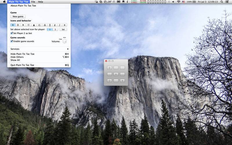 This game is a plain game of Tic Tac Toe; no redundant graphics, distractions, nor large window sizes -- just the game, delivered by the beauty of OSX graphical interface.