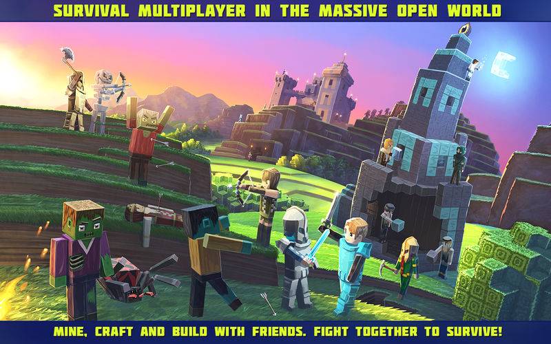 - Create your own team and build your base with friends to survive and protect yourself from monsters like zombies and spiders, creepers and skeletons, army of hostile players and fighting teams.