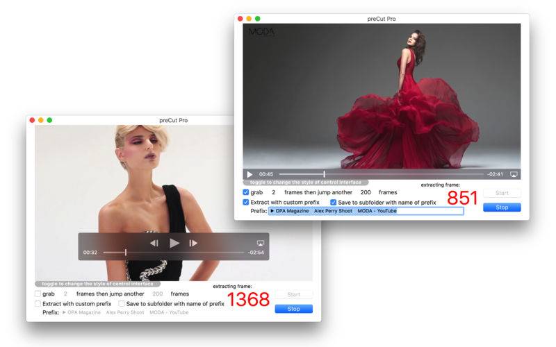 Drag & drop your movie, preCut Pro will extract EACH video frames and save them into image at highest possible resolution.