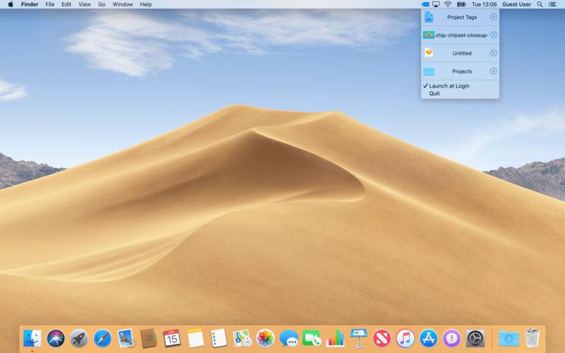 This is a simple menu bar utility to keep your frequent projects/apps/files right into the menubar so that you can quickly laugh then when you want to work on them without locating then in finder to launch every time.