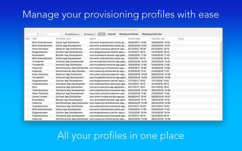 Sporting a slick but powerful interface with advanced search options, this app will put you in the driver's seat when it comes to managing your provisioning profiles.