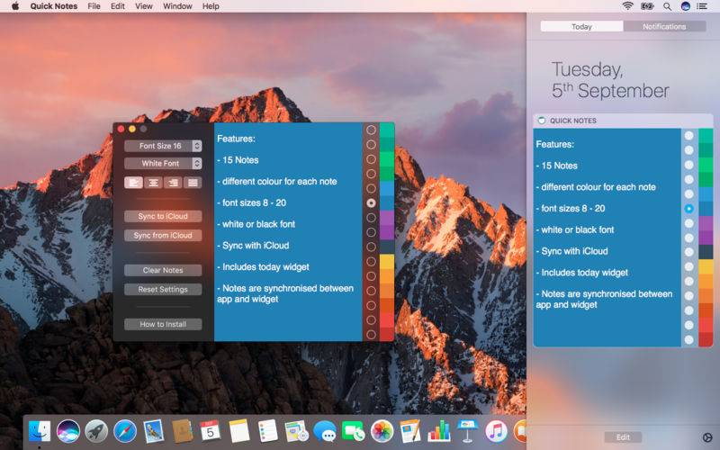 - Click the coloured squares in the today widget to open quick notes App.