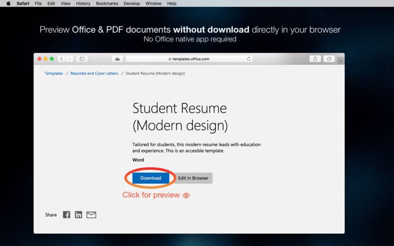 QuickView for Safari is a simple extension ready to use every time you need to take a peek at a document, but you do not want to download the file or to install third party software on your computer.