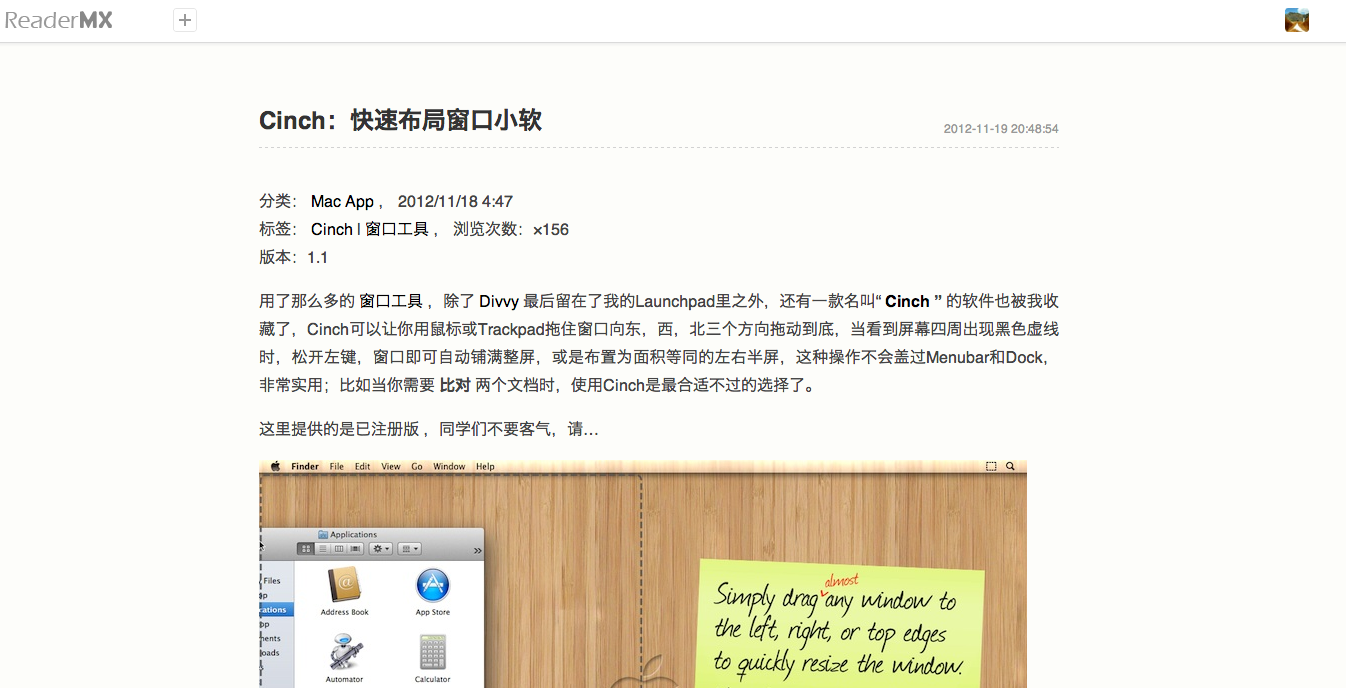 从国外的Pocket(Read It Later),Instapaper,Readability,Feedly,再到国内的随身看,爱马克,偶都有了尝试,感觉都各有所长,今天再与大家分享一个稍后读服务,他叫“ReaderMX”,是由我国的WP达人“摄氏度”开发的,目前刚刚推出在线版以及两个浏览器插件。