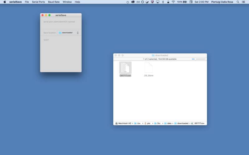 serialSave allows to store locally on your computer incoming messages from microcontrollers like Arduino and RaspberryPi.