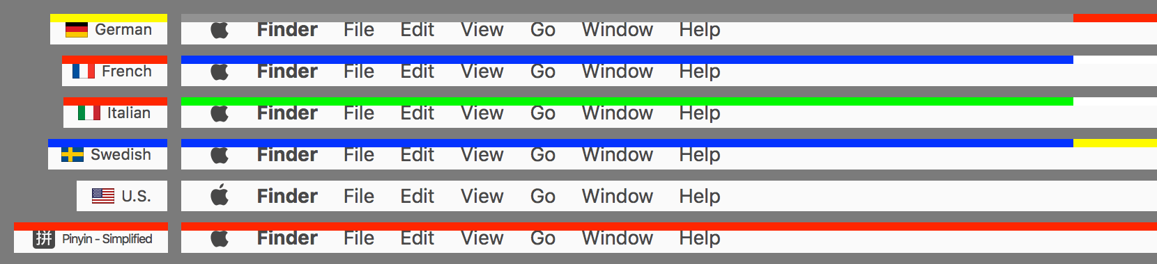 ShowyEdge displays a color bar at the top edge of the screen depending on the current input source. You can recognize the current input source very easily even if you are using fullscreen apps.