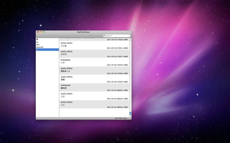 ** This application is not Skype ** viewer for Skype Chat log. Requirements: Skype for Mac 5.0 or higher - read a chat logs very quickly. - search a chat logs very quickly. - save log history to file in text format or HTML, CSV.