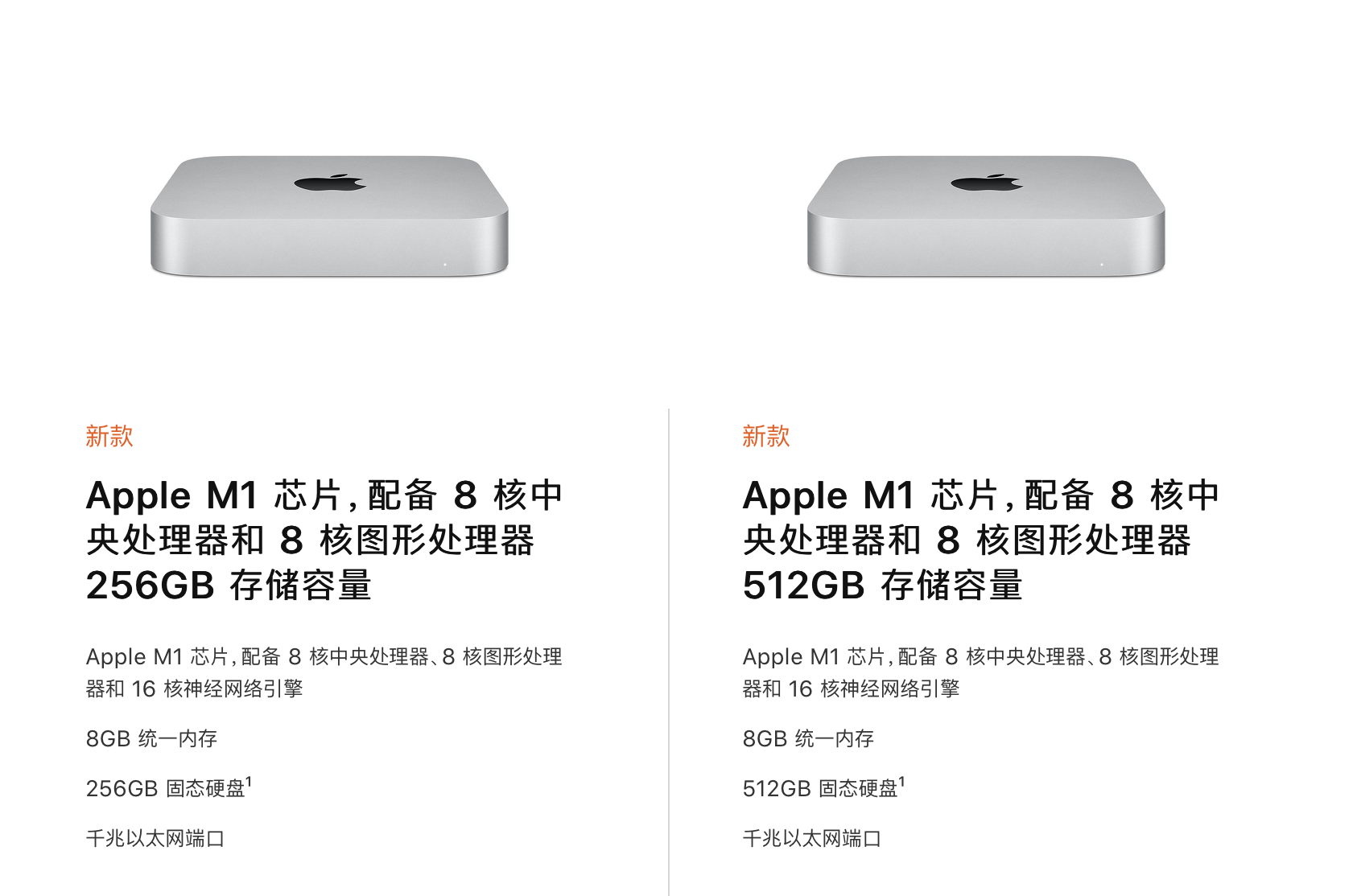 最后,苹果发布了搭载M1芯片的全新廉价版 Mac mini,但保留了基于英特尔的高端机型。此前,低端 Mac mini 的起售价为5299人民币,高端机型的起售价为6799人民币。