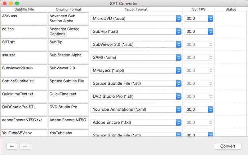 We support the following subtitle formats now. We are going to support as many formats as possible. Before you buy this app, you can email a sample file to helloliubin@gmail.com to check if it is supported. When you find your format is not supported, or the subtitle file is not working in SRT Converter, before you leave a negative review, please send email to us. We'll fix it as soon as possible. Thank you very much.