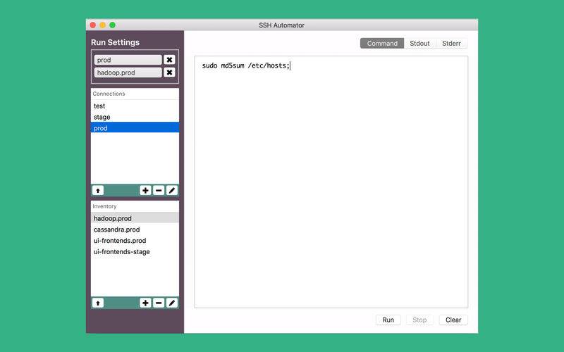 The app iterates through hosts, one at a time, and executes the specified commands. Stdout and stderr are outputted to scrollable views. Some great use cases for SSH Automator are: checking system date, time zone, uptime; as well as comparing: files, hashes, directory contents, etc., for consistency across hosts.
