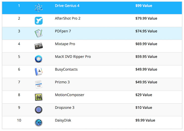 Bundle 的价格为 39.99 美元,在 10 款软件原价的总和($ 532.81)上优惠了余 9 折, 目前你可以在我站看到 Prizmo、Dropzone 以及 DaisyDisk 的评测,其中 DaisyDisk 在我淘宝店仅售 48 元。晚些时候我们会为大家更新软件套装内的软件介绍,请等一下。