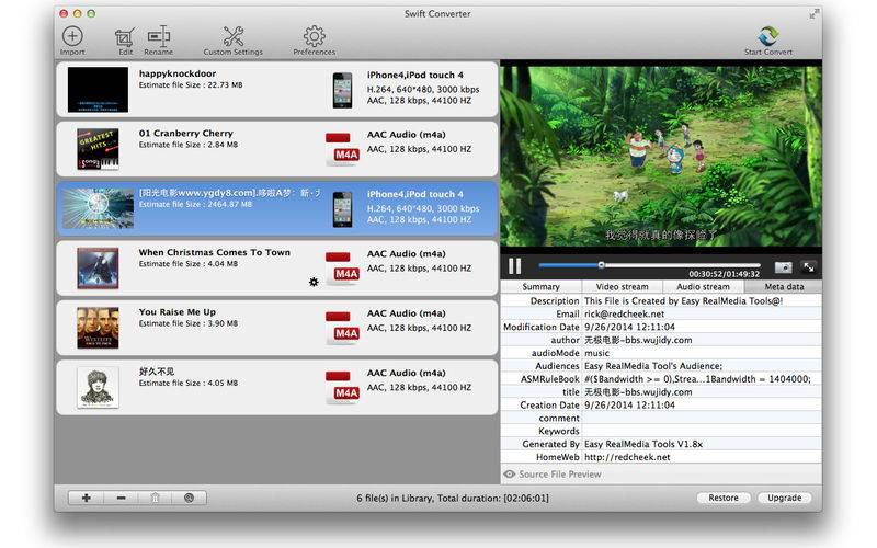Swift Converter 2 is a video utility tool for converting formats from video to video, video to audio,audio to audio. you can easily edit(split,trim,add watermark,crop) and convert your video or audio with Swift Converter. Convert any formats to your apple device.