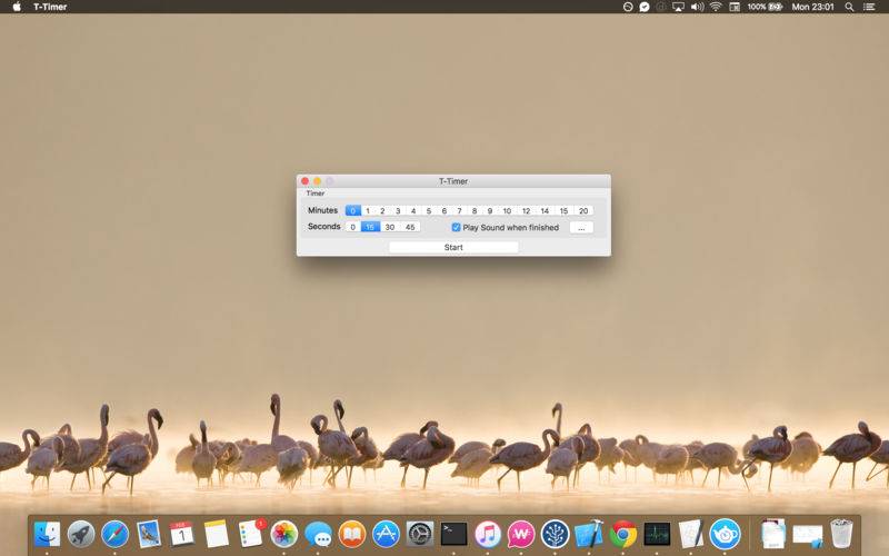 After the countdown is completed a sound will be played and an alert will be shown and brought in front (even if you're using multiple spaces/desktops).