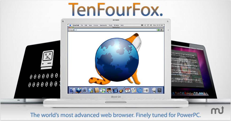 TenFourFox is a fast, efficient Web browser always based on the current version of Firefox, but unlike the main distribution TenFourFox is compatible with OS X 10.4 and 10.5 running on PowerPC processors. It comes in different tuned versions for specific PowerPC processor families: TenFourFox G5 TenFourFox G4 - build 7450 TenFourFox G4 - build 7400 (also for 7410) TenFourFox G3 If you feel unsure what type of PowerPC processor your Mac has, go to the Apple menu and choose "About this Mac" and check the processor field. On the G4 Mac open the Terminal app (in Applications -> Utilities) and type the command machine and press return. You can read more in the Wiki entry; WhichVersion. TenFourFox no longer supports plugins or Flash - As of the previous TenFourFox 6.0, for the following reasons plugin support ships disabled. Sites will now act as if no plugins were installed at all. For details and an in-depth explanation of this policy and other workarounds, see Why aren't plugins supported in TenFourFox?. Plugins on PowerPC are of special concern because Mozilla is making updates to their plugin architecture which may require the plugins themselves to be updated, and there are certain difficult-to-correct bugs with them already on Tiger. Most importantly, Adobe Flash for PowerPC is no longer maintained and has known security risks that can crash or leak data, some sites requires versions not available on the PowerPC, and QuickTime for Leopard will lose its own support with the release of OS X Lion. For these and other reasons, TenFourFox does not run plugins, and they cannot be enabled.