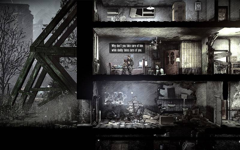 In This War Of Mine you do not play as an elite soldier, rather a group of civilians trying to survive in a besieged city; struggling with lack of food, medicine and constant danger from snipers and hostile scavengers. The game provides an experience of war seen from an entirely new angle.
