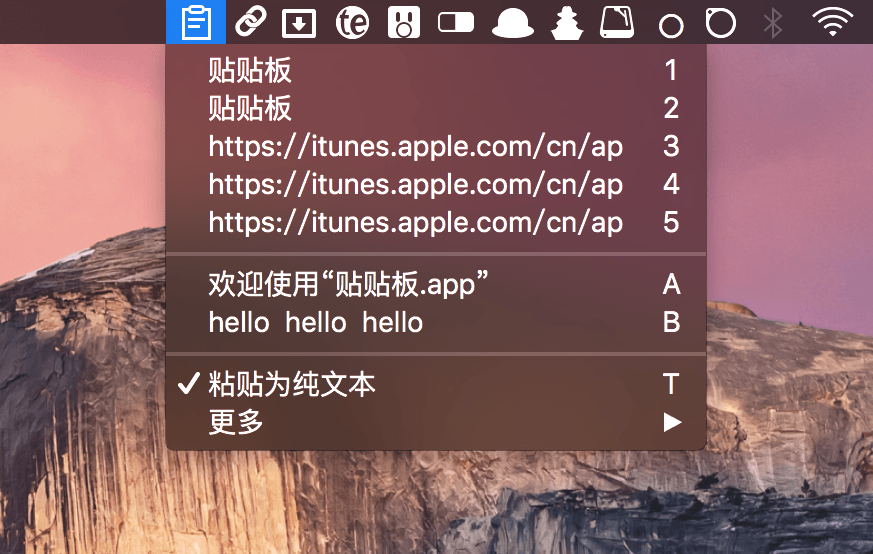 贴贴板是一款非常简洁易用的剪贴板工具,没有 CopylessLaunchbar 那么复杂的设计,只提供在 Menubar 查看剪贴文本记录,无需 Dock 或独立窗口支持,组合键唤出剪贴板窗口,可在光标附近即时显示,方便文本编辑工作高效运转。