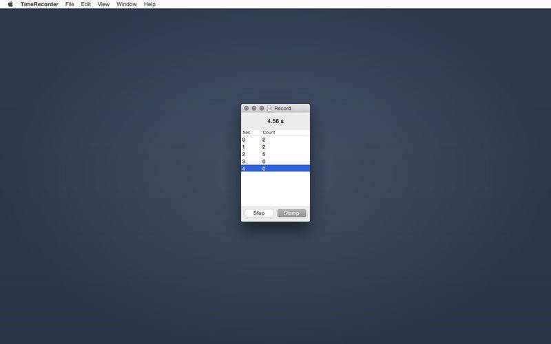 TimeRecorder is a simple application that records clicking. Every time you click the button on the window, the elapsed time from the start of measurement time is recorded. The number of clicks per second is displayed in the window, and you can further export it in CSV / TSV format.