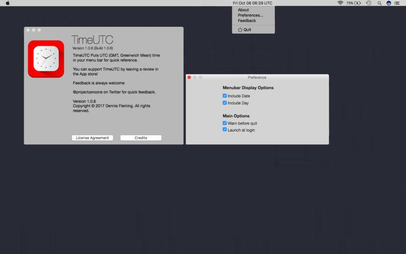 For MacOS: Puts UTC (GMT, Greenwich Mean) time in your menu bar for quick reference.