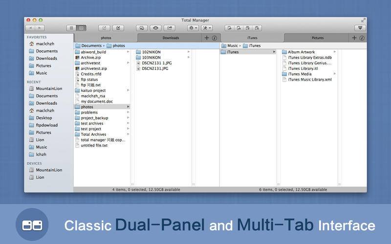 Total Manager is an all-in-one app to manage loads of files in an efficient way. Total Manager is a powerful file manager with a classic double-window and multi-tab interface. It is not only a professional archiving app that can easily compress, extract, and preview almost all archive files such as ZIP, RAR, 7z and more, but also supports viewing images, playing audio and video files, together with basic operation such as copy, move, rename, and delete. Moreover, you can open multiple tabs and browse local directories and archives separately at the same time. In short, it's a great file manager. Features Multi-tab interface Compression and decompression Supports numerous file formats View files Play video and audio Get file details Display/hide hidden files with one click Powerful batch-renamer View file hashes View a complete hex dump of files Support multitasking -- you are free to work on other files while you extract, copy, or move very large files Support common keyboard shortcuts Easily connect to servers and go to folders Create new files in the current folder -- we provide a lot of document templates and you can add customized templates