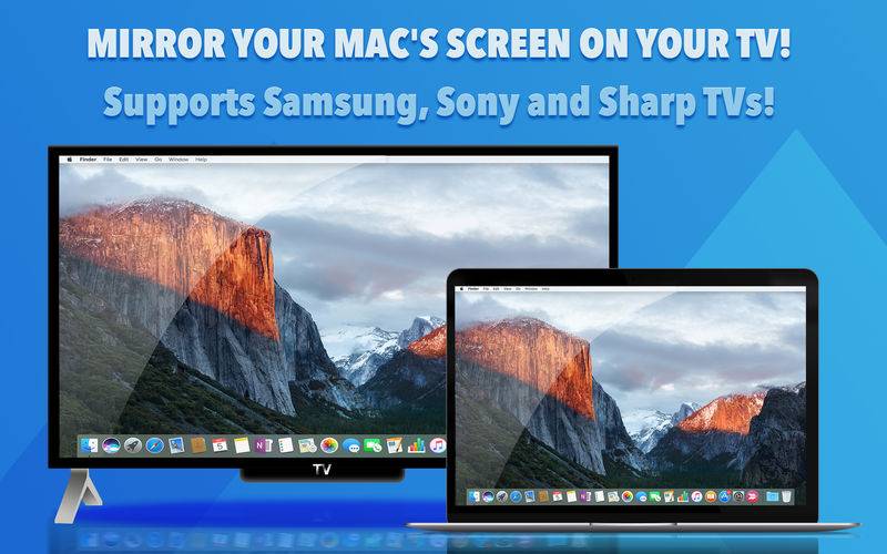 TV Mirror App allows you to wirelessly mirror your Mac's Screen to Samsung/Sony/Sharp TVs! Just select your TV from the list and click the "Start Mirroring" button. Your Mac's screen will then start mirroring to your TV. No other configuration is needed – meaning no hassle! It's great for watching movies, viewing photos, making presentations, and much more!