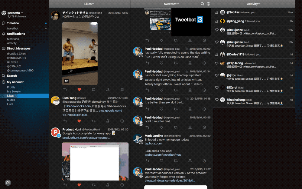 我想这两天圈里的社交网络话题的头条非 Tweetbot for Mac 3.0 莫属了,作为一个老牌 Twitter 第三方客户端,Tweetbot 的升级更新总是牵动着果粉的心,它的成功又推动开发团队 Tapbots 推出了 Pastebot,Calcbot 等周边应用,都取得了广泛的关注和优秀的成绩。