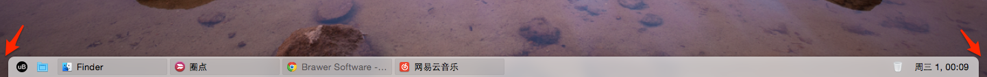 uBar 有黑白两种主题可选,光标移到任务栏顶部,三指同时向上滑动可将任务栏高度升级到原有的5倍,这样可容纳更多的应用程序缩小窗口在此待命。