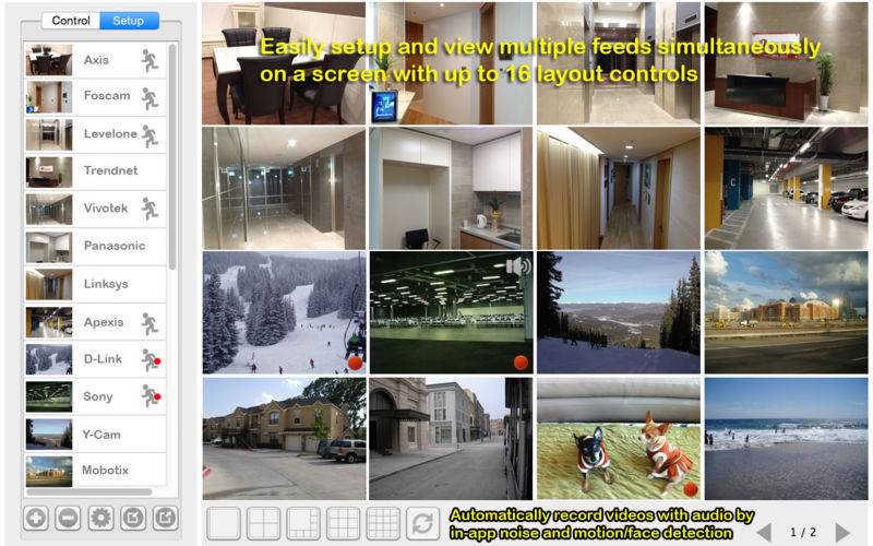uNetCams allows you to monitor multiple live video and audio feeds directly from network cameras (1000+ models of network cameras from 100+ manufacturers) and built-in/FireWire/USB webcams with top notch performance and speed.