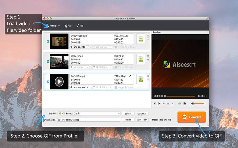 Video to GIF Maker是Mac OS X上的顶级gif制造商。一方面,此视频到GIF转换器可帮助您从视频制作GIF。像MP4到GIF,MOV到GIF和200+其他视频到GIF。另一方面,您可以在创建GIF动画之前编辑视频并调整视频设置。