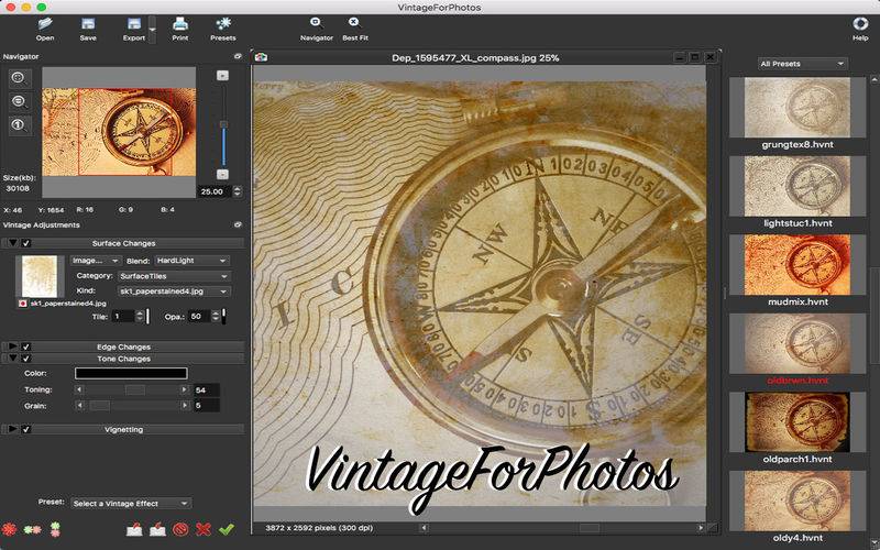 VintageForPhotos works as a standalone application, but can also be launched directly from your Apple Photos. It works on any image.