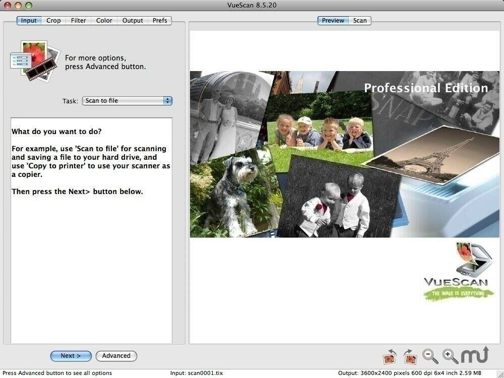 VueScan is a scanning program that works with most high-quality flatbed and film scanners to produce scans that have excellent color fidelity and color balance. VueScan is easy to use, and has advanced features for restoring faded colors, batch scanning and other features used by professional photographers. Why should you use VueScan? Easy to use - just run VueScan, press Preview, adjust the cropping, then press Scan. Accurate colors - uses ICC profiles and IT8 calibration. Powerful - dozens of advanced options. Faster workflow - can edit one image while the next image is being scanned (most scanner software won't let you work with one image while another is being scanned). Simple to install - installing VueScan changes nothing on your system, installs nothing in your operating system and all other scanner software will continue to function. The list of supported scanners is available here. The list of supported digital camera RAW files is available here.